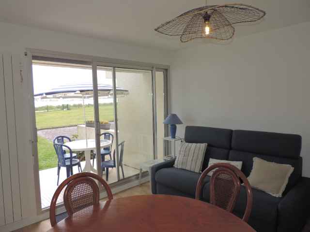 Apartment renovated in 2019, at the ground floor of the "Résidence du Teven" Ile Tudy, directly front of the beach. Facing South. Private parking place outside.