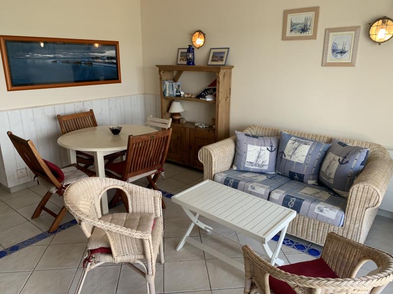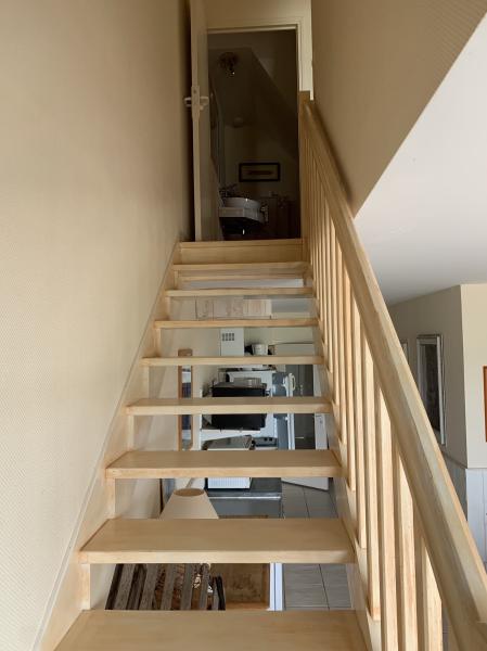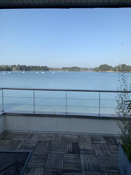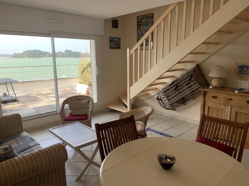 Nice duplex apartment at the first floor of the little "résidence de la Plage" bordering the river, enjoying a wonderful view on the sea and the sunset (facing west). Swimming possible in front of the residence. Ile Tudy