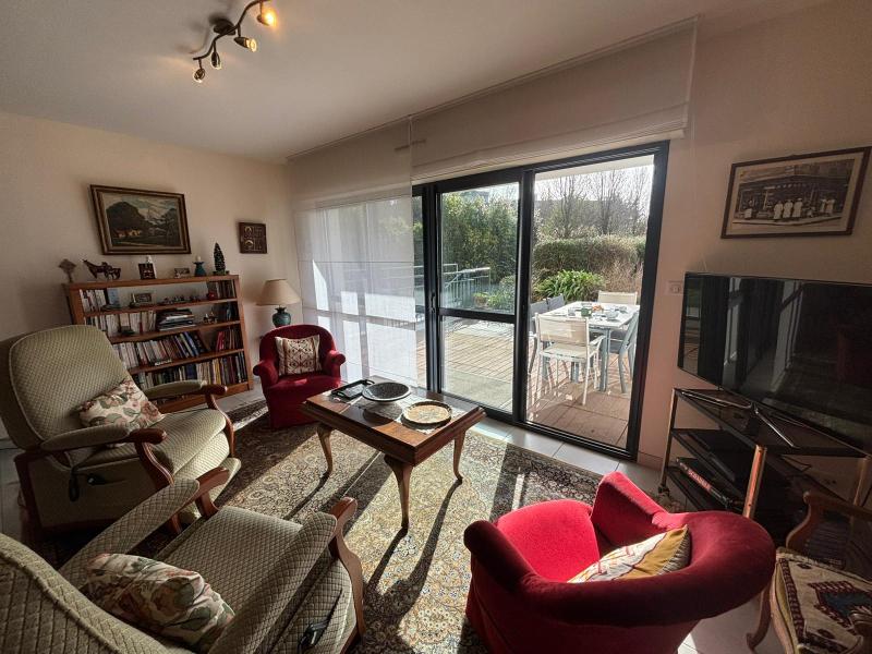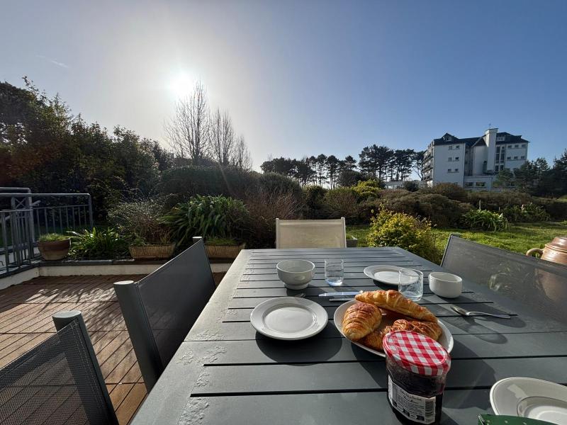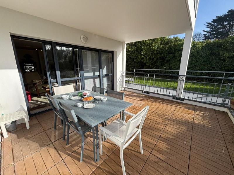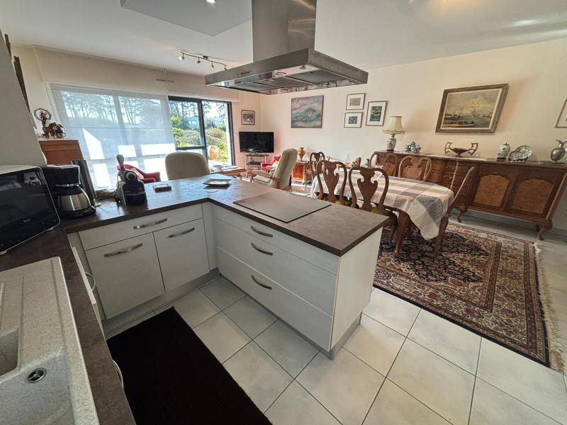 BEL APPARTEMENT spacieux et lumineux dans une résidence de standing, allée de Kermoor, à 80m de la plage du Trez, en rez de chaussée. Exposition Sud. Garage privé (pour petite voiture). Surface habitable: 85m2