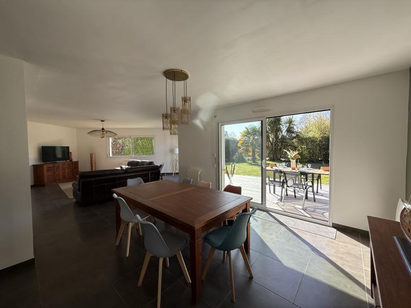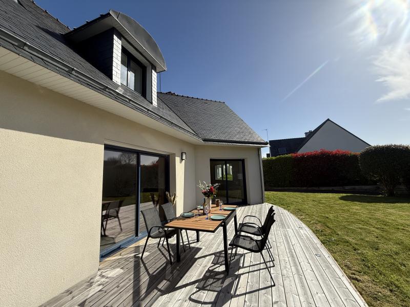 Grande maison de vacances avec jardin clos de 800m2 environ, située entre le bourg de Combrit et les plages du Treustel et de l'Ile Tudy. Exposition Sud. Stationnement des voitures dans le jardin . Maison accessible aux PMR