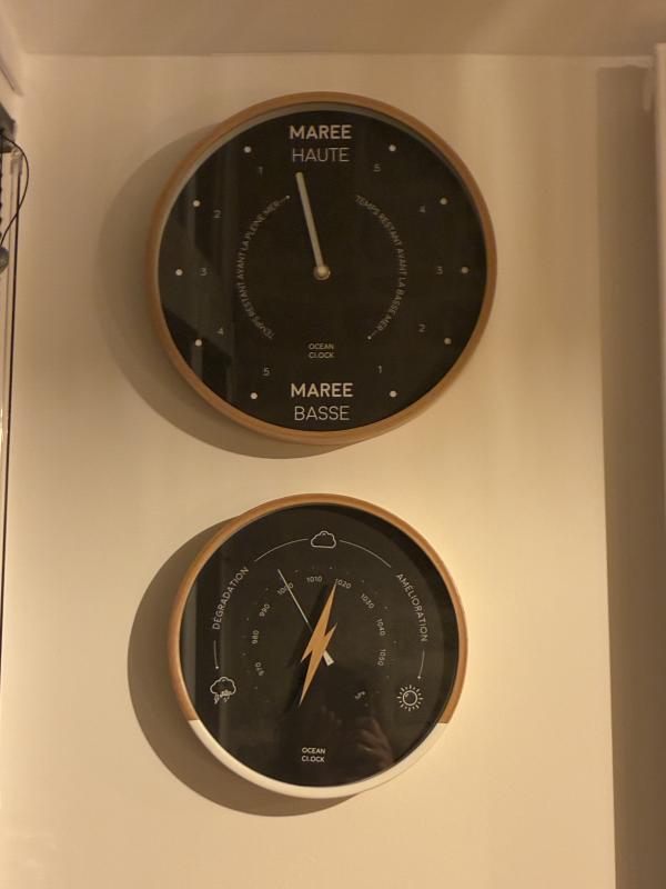 – Pièce à vivre avec partie salon (poêle à bois) , repas, cuisine aménagée, ouvrant sur le jardin côté mer