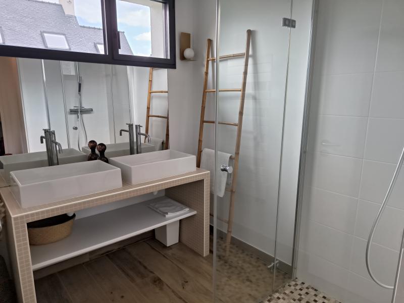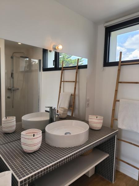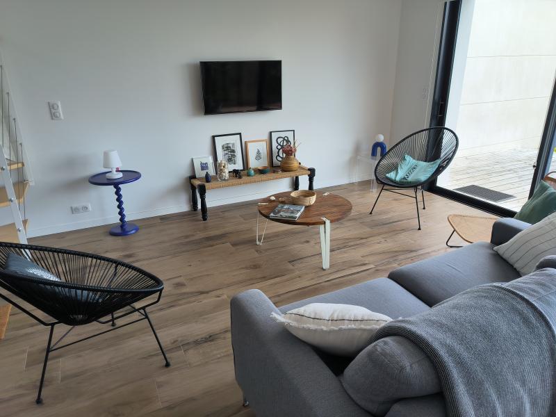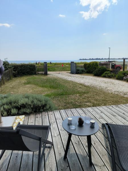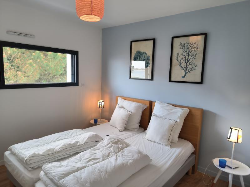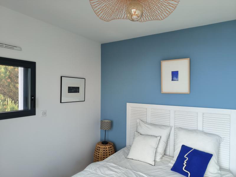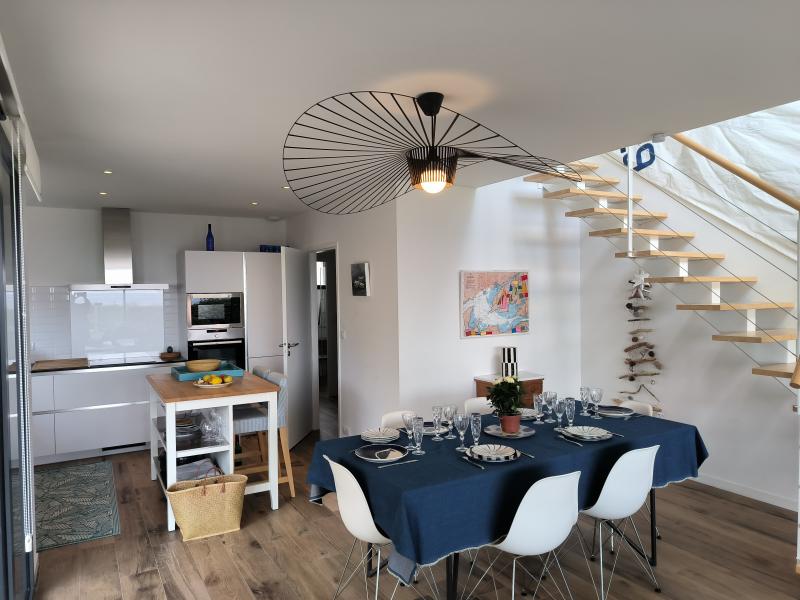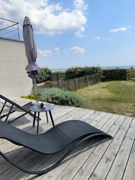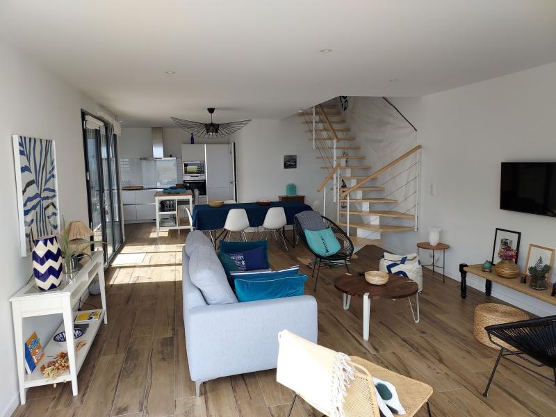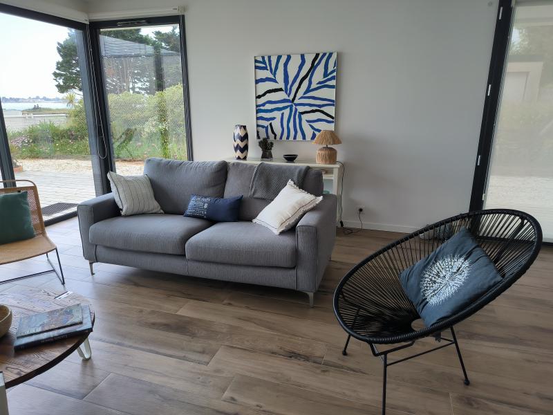 Beautiful designer villa (2016) facing south on a 350sm enclosed garden. Situated in front of the Teven beach, the walking path running between the villa and the beach.