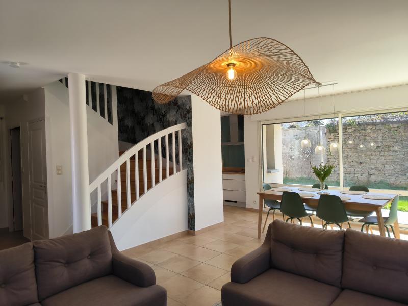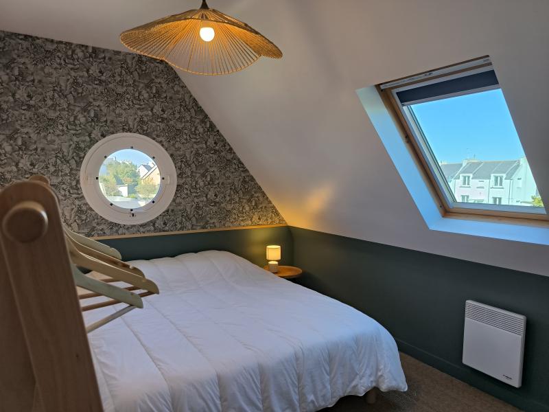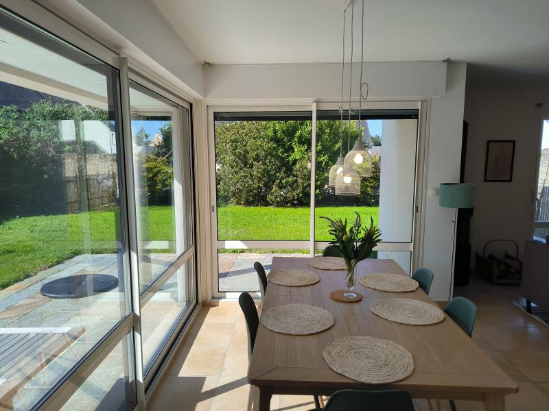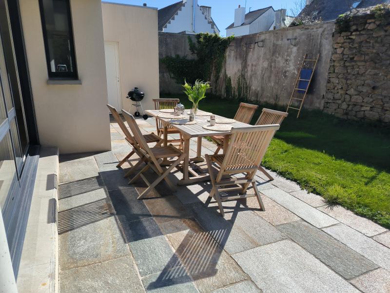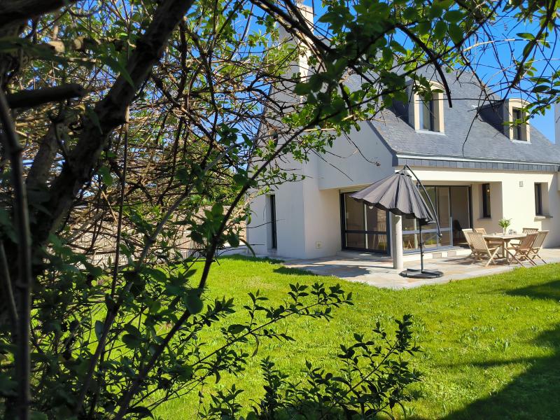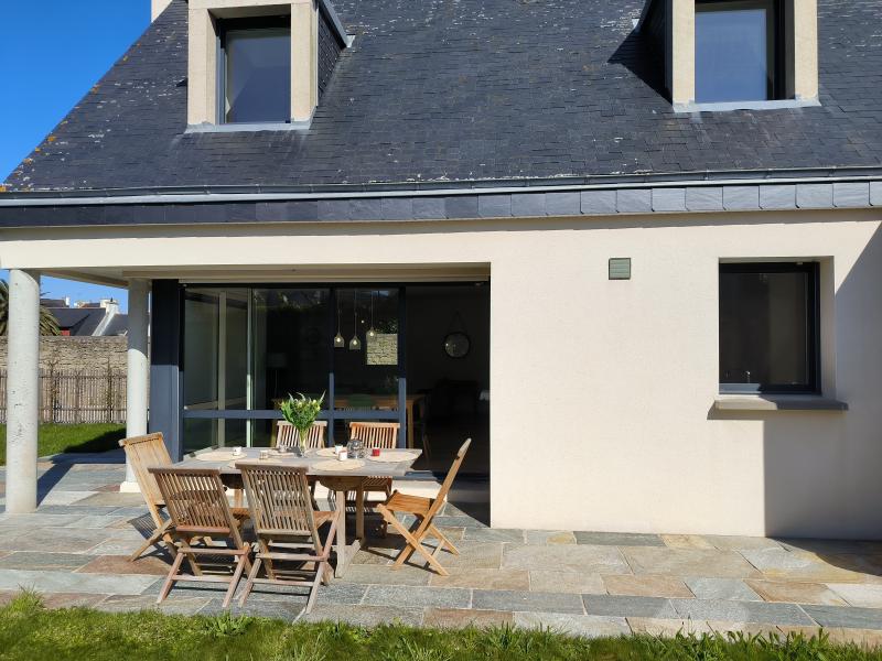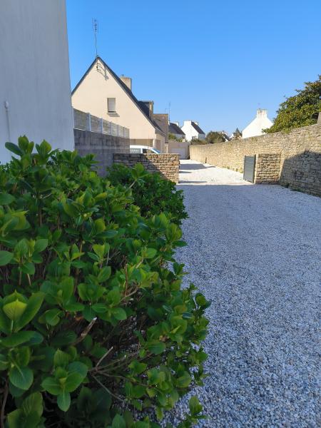 Recent villa on a partially enclosed 500 m² garden, in the heart of Lesconil, in a quiet area, just a few steps from the beautiful Sables Blancs beach and the harbor. South-facing exposure. Parking available for 2 cars at the entrance of the property.