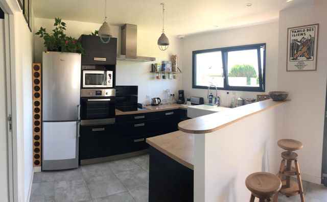 BELLE VILLA CONTEMPORAINE , sur jardin clos de 780m2, située entre Loctudy et Lesconil, proche de la plage de la Palud du Cosquer. Exp. Sud. Surface habitable: 120m2
