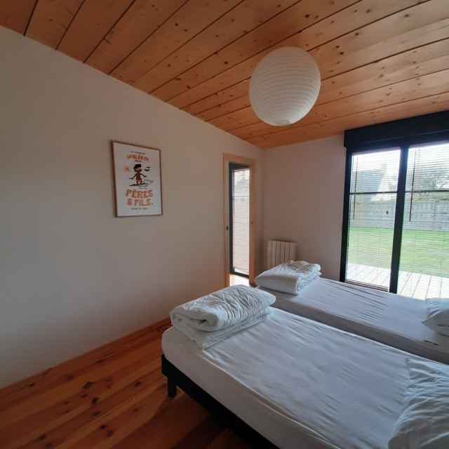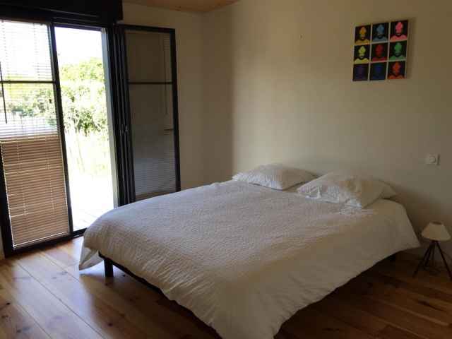 Belle villa contemporaine de plain pied avec jardin clos, située dans le triangle d'Or de Saint Guénolé, à deux pas de la plage de Pors Carn , de ses écoles de surf et de sa célébrissime paillote de plage "Chez Marie Cath". Exposition Sud. Surface habitable: 130m2 environ