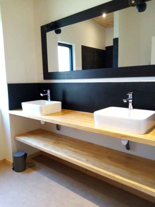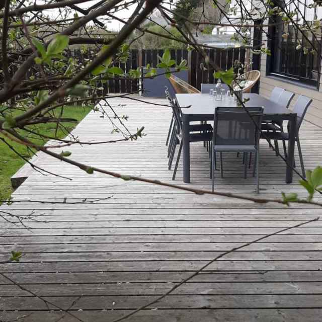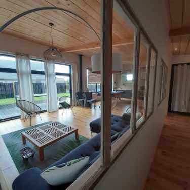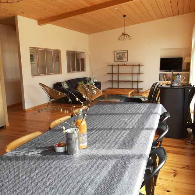 – Grande pièce à vivre (53m2) avec partie cuisine aménagée, ouvrant sur terrasse bois