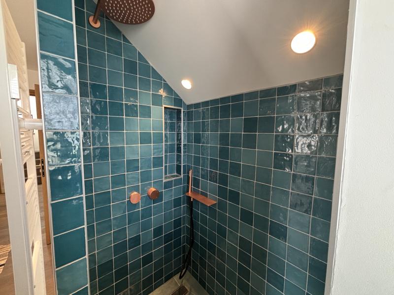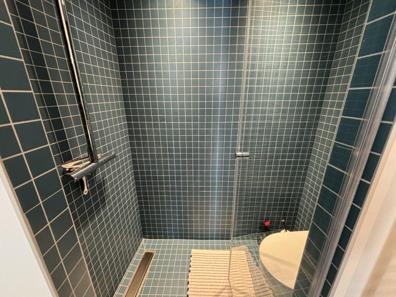 Bathroom/WC in a boat-style shower design, accessible from the kitchen