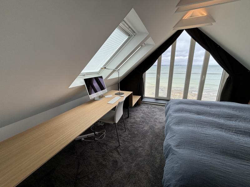 Master suite: 1 x double bed (2x 90 x 200 with a single 180 cm frame), private shower room, office area, stunning sea view