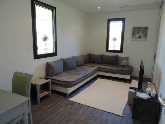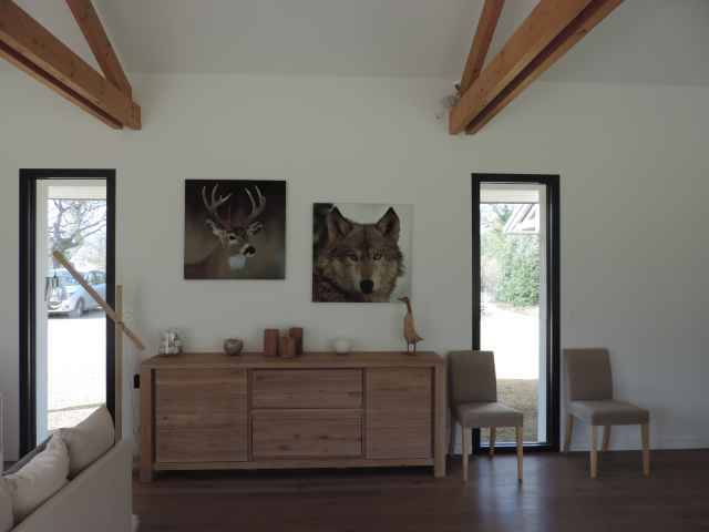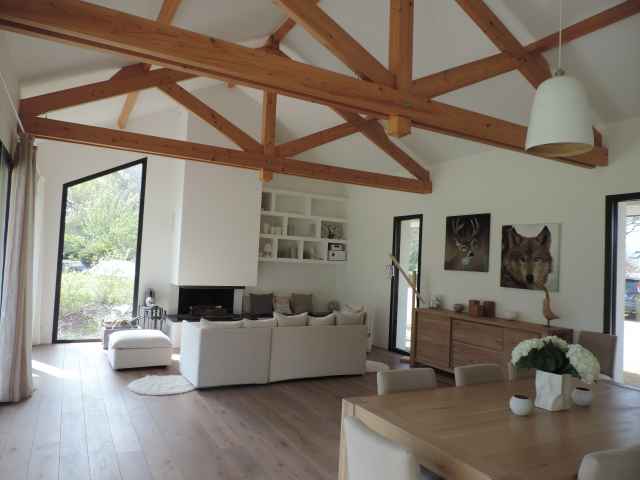 – Large living-room (70m2) with fitted kitchen area, dining area and lounge opening onto large terrace facing South. Fireplace.